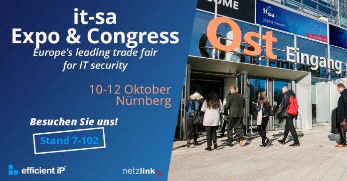 Am gemeinsamen Stand 7-102 (Halle 7) mit EfficientIP, dem langjährigen Partner in Sachen Netzwerksicherheit, berät Netzlink auf der it-sa rund um das Thema IT-Sicherheit.