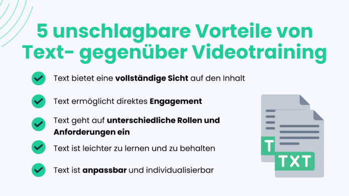 Videos werden immer beliebter – aber sind sie auch effektiver? Was vielleicht in der Freizeit gilt, lässt sich auf Cybersecurity Awareness Training nicht eins zu eins übertragen. Das Ziel von Cybersecurity Training ist es, wichtiges Wissen und Fähigkeiten zu vermitteln, um dauerhaft die Einstellungen und Verhaltensweisen der Mitarbeiter zu ändern. Wenn es um ein derart intensives Training geht, werden die Vorteile textbasierter Inhalte deutlich.