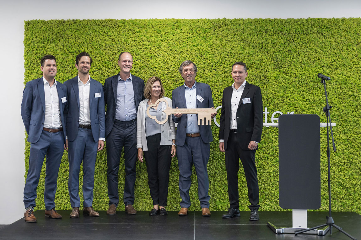 Am Freitag, den 22. September, bekamen Unternehmensgründer Dieter mit Bärbel Baur, die Geschäftsführer Fabian und Rafael Baur und wenglorMEL-Geschäftsführer Torsten Hellerström symbolisch den Schlüssel zum wenglorCenter von Architekt Markus Hering überreicht. Auch der Bürgermeister der Stadt Unterschleißheim, Christian Böck, gratulierte wenglor zur Eröffnung des Gebäudes und drückte seine Freude über den neuen Firmensitz am vielseitigen Industriestandort Unterschleißheim aus. Am Samstag, den 23. Semptember, öffnete das wenglorCenter seine Türen für die Familien und Freunde der wenglorMEL-Mitarbeitenden, die den neuen Standort bei Führungen durchs Haus entdecken konnten.