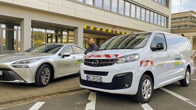 Schnelles Tanken, klimaneutraler Betrieb und höhere Reichweiten als bei herkömmlichen E-Autos sind aus Sicht von Gasnetz Hamburg die Hauptvorteile. Mit ihren Brennstoffzellen und E-Antrieben schaffen der Opel-Transporter im praktischen Betrieb 400 Kilometer und der Toyota sogar über 450 Kilometer Reichweite. Aufgetankt werden sie innerhalb weniger Minuten an inzwischen drei Tankstellen in Hamburg. Etwas kleiner als ein Bully fasst der Opel Vivaro Hydrogen genug Geräte, Werkzeuge und Ersatzteile, damit Elektrotechniker Robin Flatt damit zur Wartung von Gasanlagen ausrücken kann. „Der Wagen hatte zwar einzelne Kinderkrankheiten, aber jetzt funktioniert er zuverlässig“, fasst der Techniker seine Erfahrungen aus den ersten Einsatzwochen zusammen. „Fast eine Tonne Nutzlast und der ruhige abgasfreie elektrische Antrieb machen meine Dienstfahrten angenehm und klimafreundlich.“
