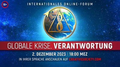 Die Teilnehmer des Projektes Kreative Gesellschaft veranstalteten am 2. Dezember 2023 ein eindrucksvolles internationales öffentliches Online-Forum „Globale Krise. Verantwortung“. Dieses bedeutende Ereignis wurde auf Rumble (zensurfrei), Youtube und Tausenden anderen Medienplattformen live übertragen.