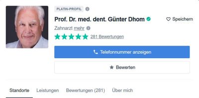 Patientinnen und Patienten: Erfahrungen in der Zahnarzt-Praxis Prof. Dhom
