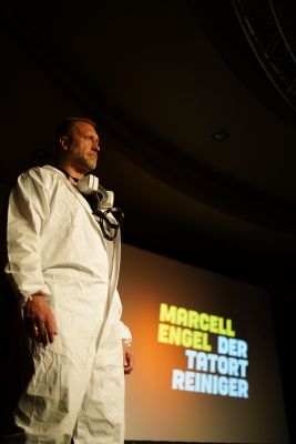 Spannung gepaart mit Tiefgang ist immer garantiert, wenn Marcell Engel auftritt. Er selbst weiß: „Es geht letztlich immer um den Tatort Leben und „Was können wir von den Toten lernen?“ Und so nimmt er das Publikum mit auf eine Reise an echte Tatorte und berichtet über außergewöhnliche Erlebnisse. Der erfahrene Tatortreiniger – über 15.000 Einsätze in 30 Jahren! – zeigt in seinem Live-Programm anhand von authentischen Bildern und Videos reale Einsätze. Mehr noch, er holt den Geruch des Todes an die Veranstaltungsorte und hat echte Tatwaffen dabei. Doch der erfahrene Experte hat noch viel mehr im Gepäck, woran er die Besucher buchstäblich teilhaben lässt. Engel dazu: „Wenn ich komme, ist auch immer Bewegung dabei. Die Gäste dürfen sich auf interaktive Momente einstellen.“ Zudem hält er weitere Überraschungen bereit, die die Live-Veranstaltung lebendig und abwechslungsreich machen. Erfahrungsgemäß hat das Publikum viele Fragen, die Marcell Engel gern im Anschluss beantwortet und für Fotos und Autogramme zur Verfügung steht.