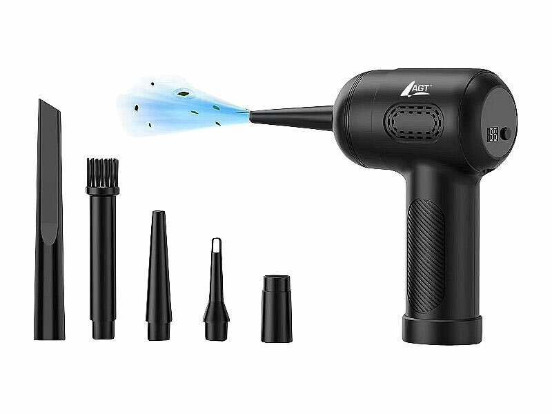 Oberflächen schonend von Staub befreien: Mit dem Akku-Druckluftgebläse von AGT bläst man Schmutz einfach und schnell weg – auch in Nischen und Ritzen. Dank LED-Licht entgeht einem auch in dunklen Bereichen kein Staub mehr. Ideal beim Basteln im Hobbykeller, zum Reinigen von Computerplatinen, Nähmaschinen, Modellbauten und vielem mehr.