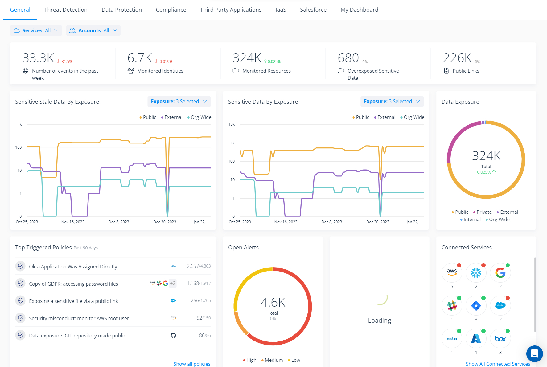 Kontinuierliche Überwachung der Snowflake-Umgebung auf abnormale oder risikoreiche Aktivitäten wie z. B. die Freilegung von Daten im Internet
