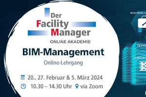 Mit dem neuen Lehrgang „BIM-Management“ bietet das Fachmagazin industrieBAU gemeinsam mit den Schwesterpublikationen Der Facility Manager und CAFM-News den neuen Online-Lehrgang „BIM-Management“ an. Mit einem substanziellen Theorieteil und vier Beispielen aus der Praxis vermittelt er wesentlichen Kenntnisse, um ein BIM-Projekt von Beginn an erfolgreich zu steuern. Seine drei Module finden am 20. und 27. Februar sowie am 5. März 2024 online statt.