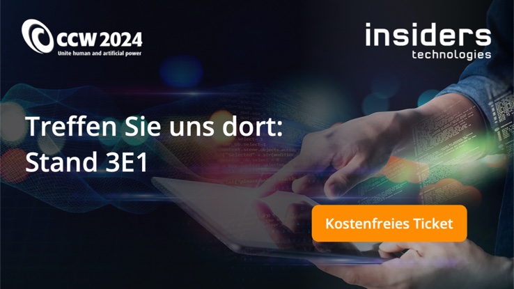 Kaiserslautern, 14. Februar 2024 – Insiders Technologies, führender Anbieter von Software für Cognitive Process Automation, ist in diesem Jahr erneut als Branchenexperte für die KI-gestützte Prozessautomatisierung bei der Call Center World, der 25. Internationalen Kongressmesse für innovativen Kundendialog, vertreten.