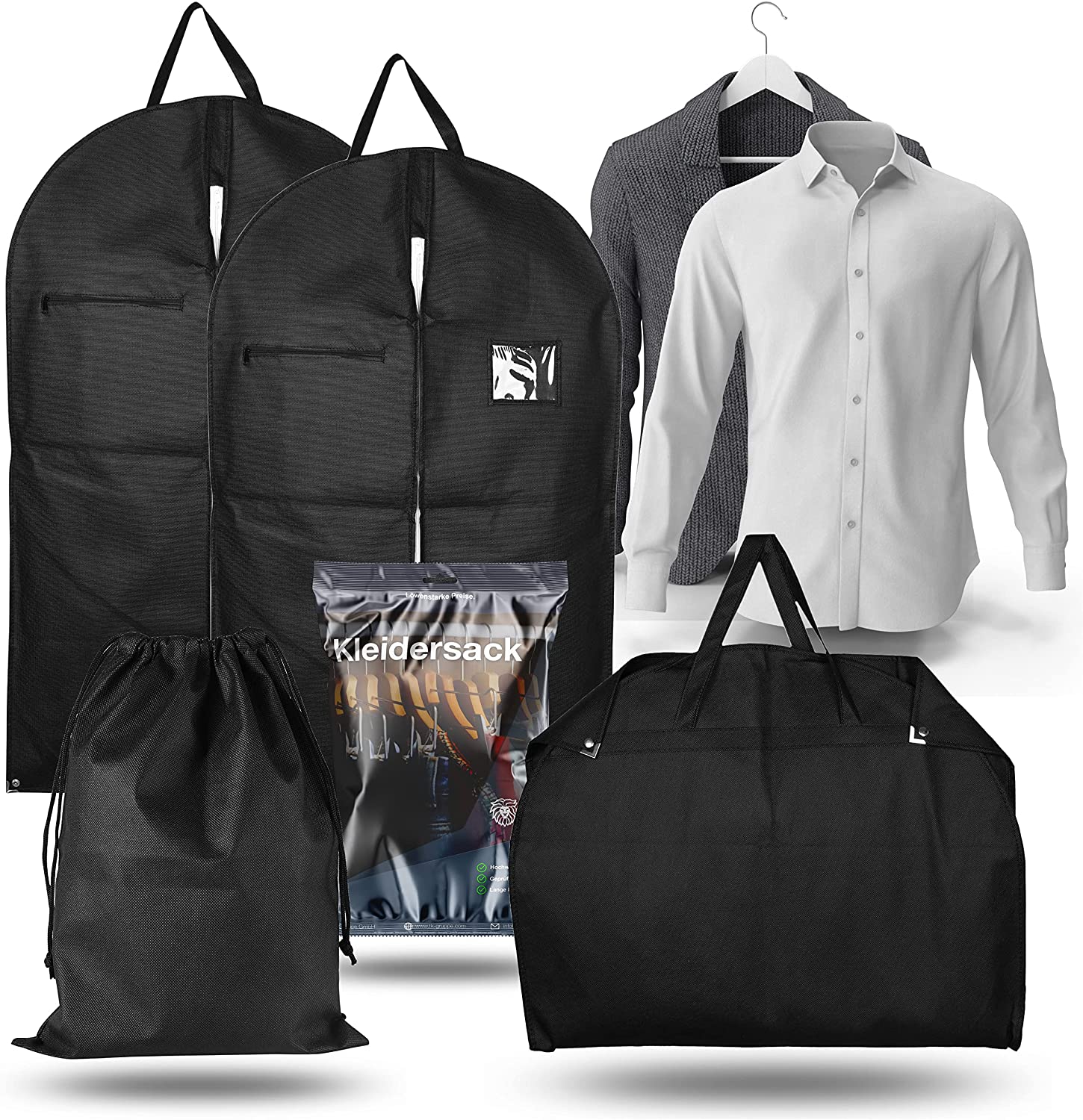 – Zwei Kleidersäcke mit Tragegriff: Für einfaches Tragen und Transportieren Ihrer Kleidung.