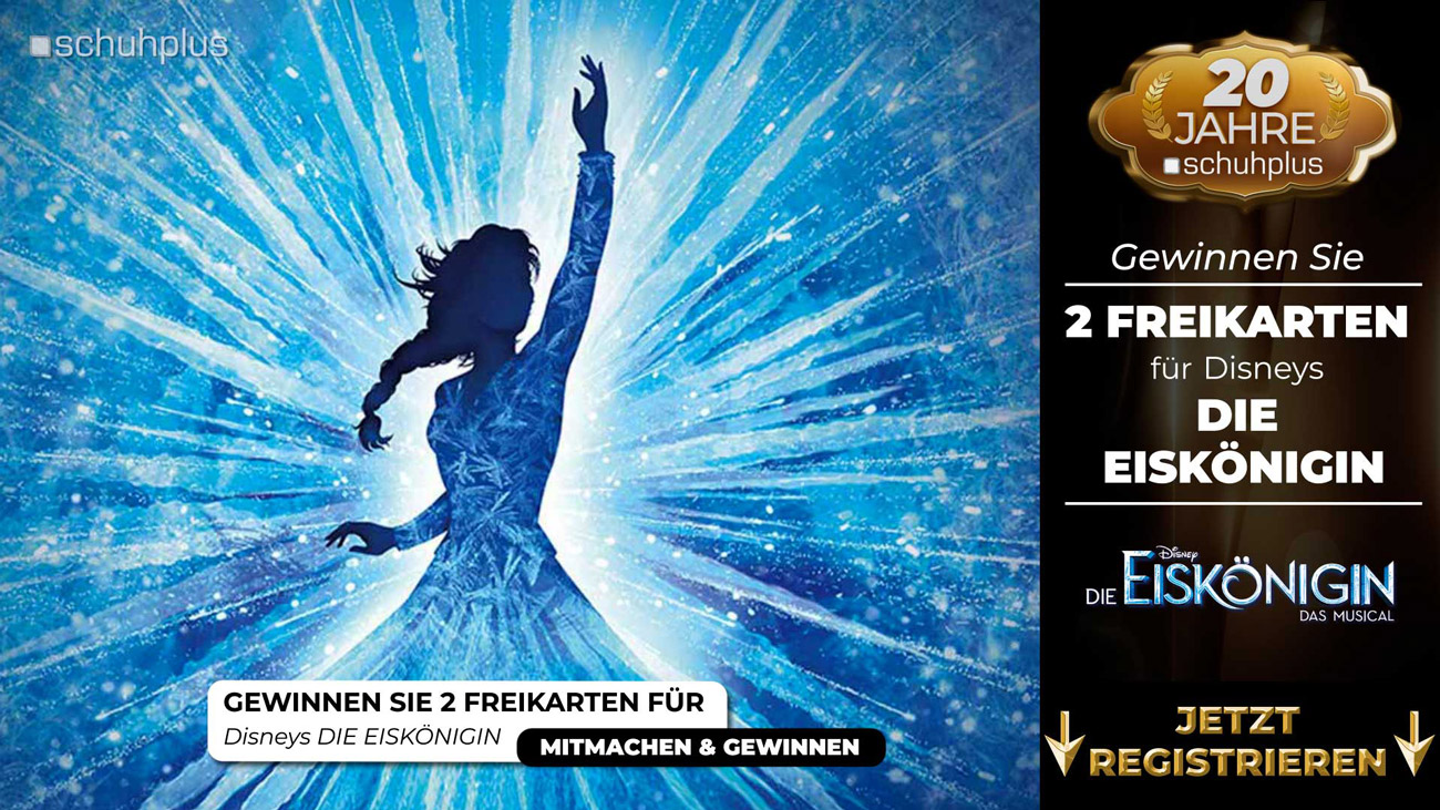 Disneys DIE EISKÖNIGIN begeistert seit Jahren ein weltweites Publikum mit seiner fesselnden Handlung, den mitreißenden Songs und den atemberaubenden Bühneneffekten. Nun haben Fans die Möglichkeit, dieses einzigartige Musical live zu erleben – und das dank schuhplus sogar kostenlos. Kay Zimmer, Gründer und Geschäftsführer von schuhplus, äußerte sich begeistert über die Gewinnspielaktion: „Zum 20-jährigen Jubiläum möchten wir unserer Kundschaft etwas Besonderes bieten. Die Verlosung von Freikarten für Disneys DIE EISKÖNIGIN ist unser Dank an unsere treuen Kundinnen und Kunden und Teil unserer Jubiläumsfeierlichkeiten. Wir freuen uns schon jetzt darauf, die Gewinner:innen zu diesem außergewöhnlichen Erlebnis zu beglückwünschen.“