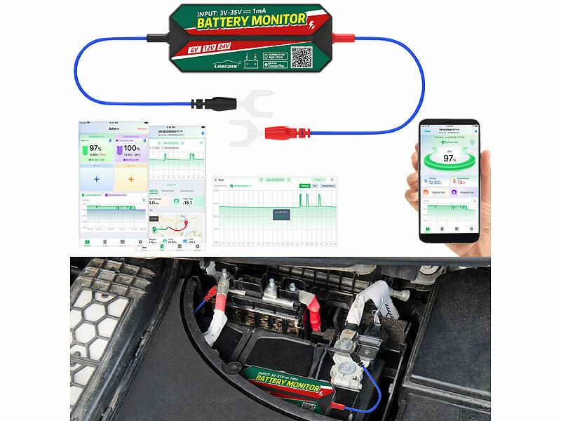 Mit dem Kfz-Batterietester und Wächter von Lescars hat man die Batterie von praktisch jedem Fahrzeug im Blick – egal ob Roller, Auto, Lkw oder Boot: Der Batteriewächter wird einfach angeschlossen und mit dem Smartphone oder Tablet-PC gekoppelt. Schon werden die Daten per kostenloser App in Echtzeit übertragen.