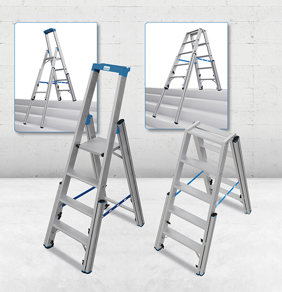 Neue ein- und beidseitig begehbare Teleskop-StufenLeitern von KRAUSE