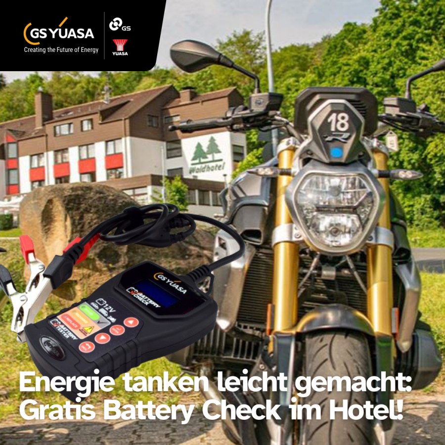 Krefeld, 21. Februar 2024 – GS Yuasa führt gemeinsam mit der Kooperative „Motorradtourismus“ einen weiteren Service ein, den es ab der kommenden Motorradsaison in den Hotels der Kooperative geben wird. Anknüpfend an die Sicherheits-Checkliste – die „6 Bs für entspanntes Fahrvergnügen“ – wird den Motorradreisenden zukünftig ein Prüfgerät des führenden Batterieherstellers zur Verfügung stehen. So profitieren Biker besonders in Punkto Komfort und Sicherheit vom „Rundum-sorglos“-Service, den die Hoteliers dank der Zusammenarbeit anbieten können.