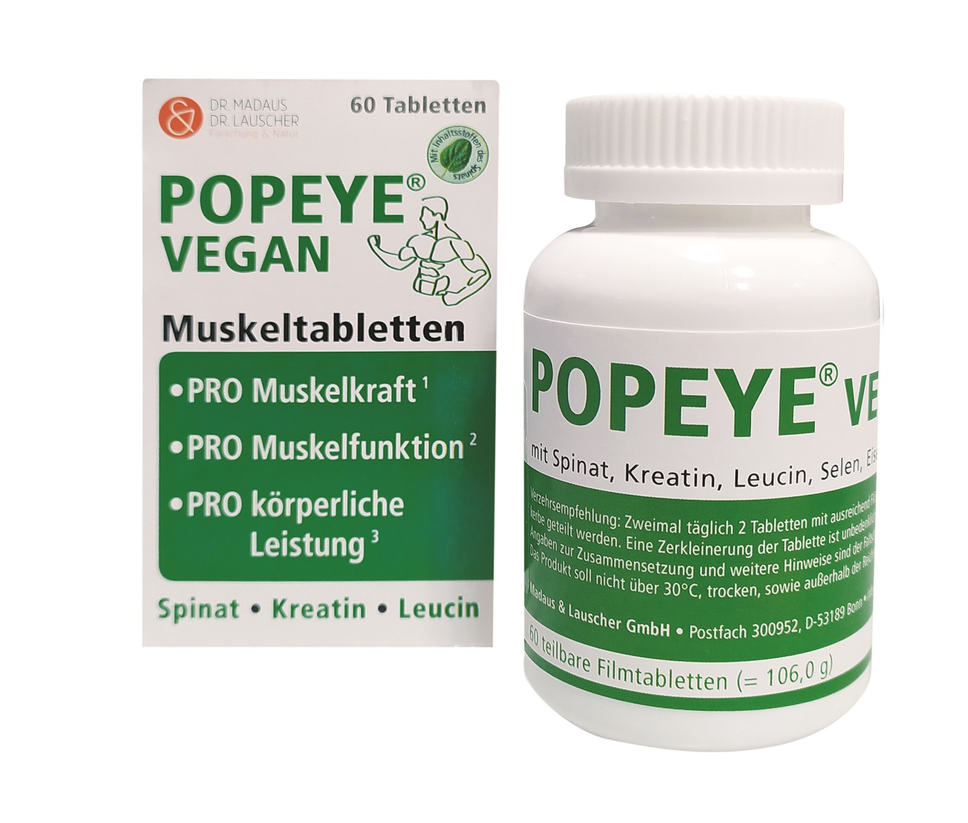 Sie wollen nach dem Winter Ihre schlaffen Muskeln wieder schnell auf Vordermann bringen? Dann können Sie das mit Bewegung erreichen und mit den Muskeltabletten „Popeye Vegan“ unterstützen. Das neue Nährstoffprodukt enthält alles, was die Muskulatur braucht, und zwar in hochwertiger Qualität, wie zum Beispiel Kreatin für Muskel- und Leistungskraft sowie Vitamin D für die normale Muskelfunktion.