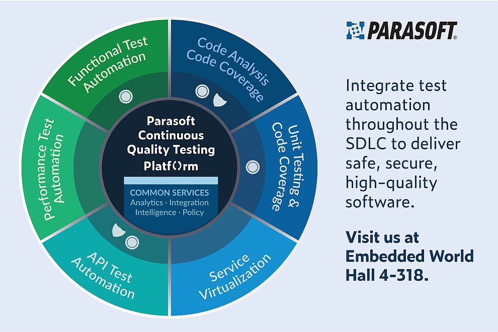 Monrovia (USA)/Berlin – März 2024 – Parasoft, führender Anbieter von automatisierten Softwaretests, präsentiert auf der embedded world (Stand 4-318) weitreichende Möglichkeiten zur Automatisierung von Softwaretests und zeigt, wie man die Einhaltung von Standards, Codesicherheit und Cybersecurity in agilen und DevOps-Umgebungen erreichen kann. Zu den Zielmärkten zählen die Automobil-, Industrieautomatisierungs-, Medizin-, Luft- und Raumfahrt- sowie die Bahnindustrie. Neu ist die Version 2023.2 von C/C++test, die sicherstellt, dass der C++17-Code dem MISRA C++ 2023 Standard entspricht.