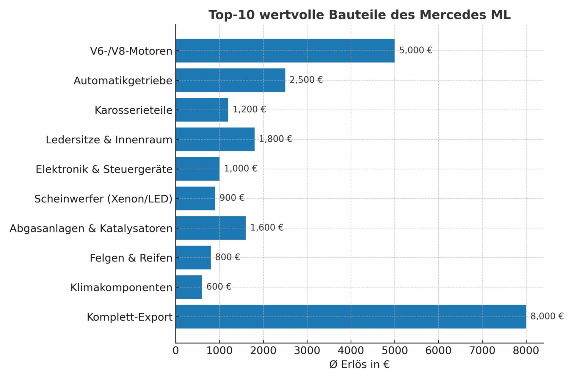 Tabelle: Wertvolle Bauteile des Mercedes ML und ihre Erlöse