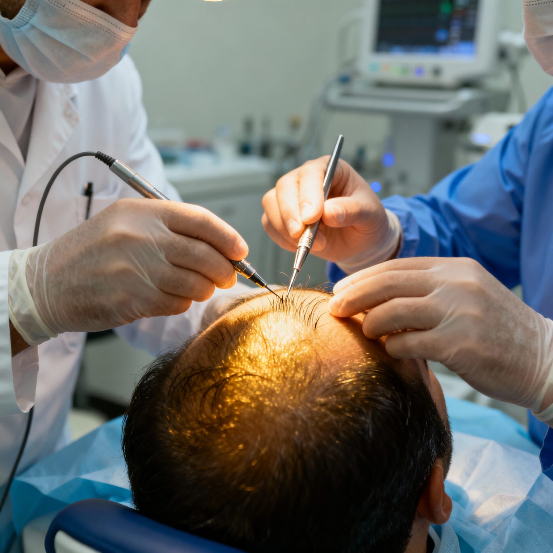 Viele Zentren führen täglich mehrere Haartransplantationen durch. Die große Fallzahl bedeutet operative Routine und präzise Handgriffe.