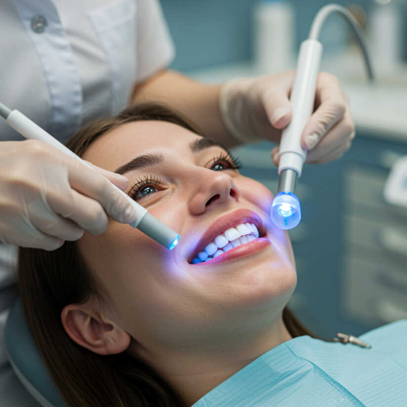 Digitale Voranalysen erfassen Zahnstruktur, Farbton und Sensibilität. Intensität und Wirkstoffkonzentration werden individuell angepasst.