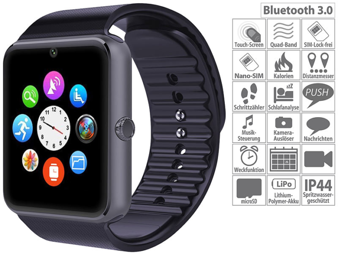 Armbanduhr zum Telefonieren, Fotografieren u.v.m.